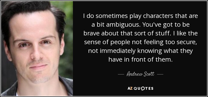 I do sometimes play characters that are a bit ambiguous. You've got to be brave about that sort of stuff. I like the sense of people not feeling too secure, not immediately knowing what they have in front of them.