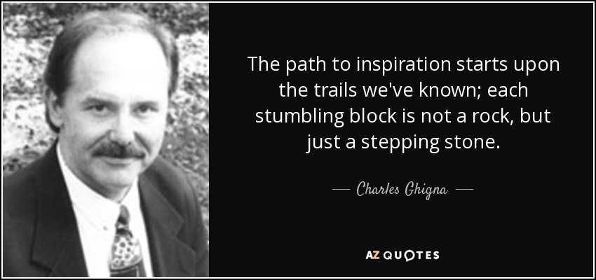 The path to inspiration starts upon the trails we've known; each stumbling block is not a rock, but just a stepping stone.
