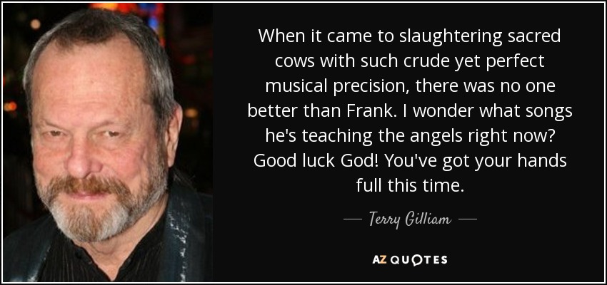 When it came to slaughtering sacred cows with such crude yet perfect musical precision, there was no one better than Frank. I wonder what songs he's teaching the angels right now? Good luck God! You've got your hands full this time.