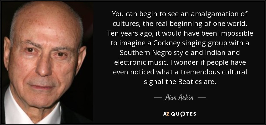 You can begin to see an amalgamation of cultures, the real beginning of one world. Ten years ago, it would have been impossible to imagine a Cockney singing group with a Southern Negro style and Indian and electronic music. I wonder if people have even noticed what a tremendous cultural signal the Beatles are.