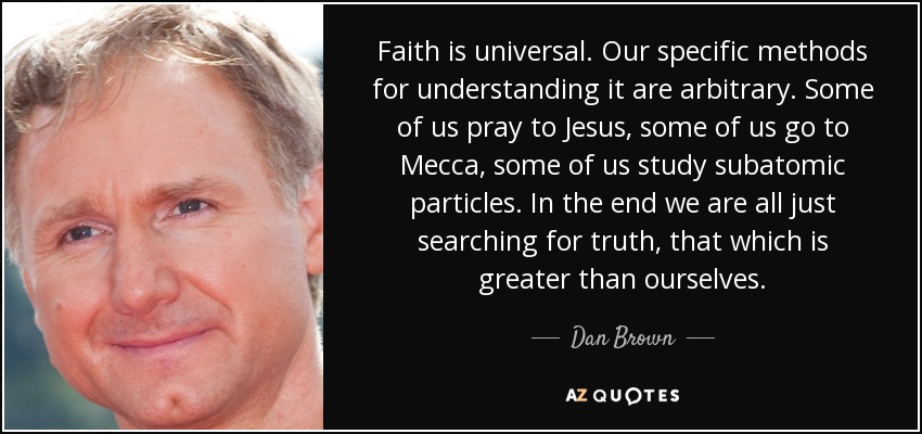 Faith is universal. Our specific methods for understanding it are arbitrary. Some of us pray to Jesus, some of us go to Mecca, some of us study subatomic particles. In the end we are all just searching for truth, that which is greater than ourselves.