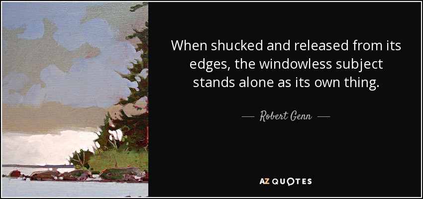 When shucked and released from its edges, the windowless subject stands alone as its own thing.