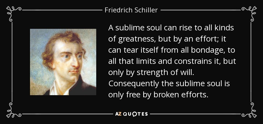 A sublime soul can rise to all kinds of greatness, but by an effort; it can tear itself from all bondage, to all that limits and constrains it, but only by strength of will. Consequently the sublime soul is only free by broken efforts.
