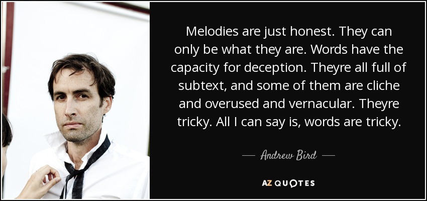Melodies are just honest. They can only be what they are. Words have the capacity for deception. Theyre all full of subtext, and some of them are cliche and overused and vernacular. Theyre tricky. All I can say is, words are tricky.