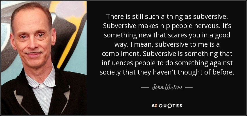 There is still such a thing as subversive. Subversive makes hip people nervous. It's something new that scares you in a good way. I mean, subversive to me is a compliment. Subversive is something that influences people to do something against society that they haven't thought of before.