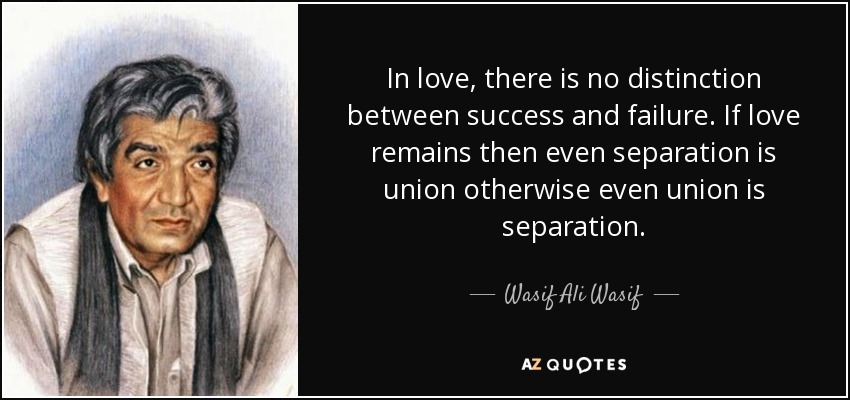 In love, there is no distinction between success and failure. If love remains then even separation is union otherwise even union is separation.