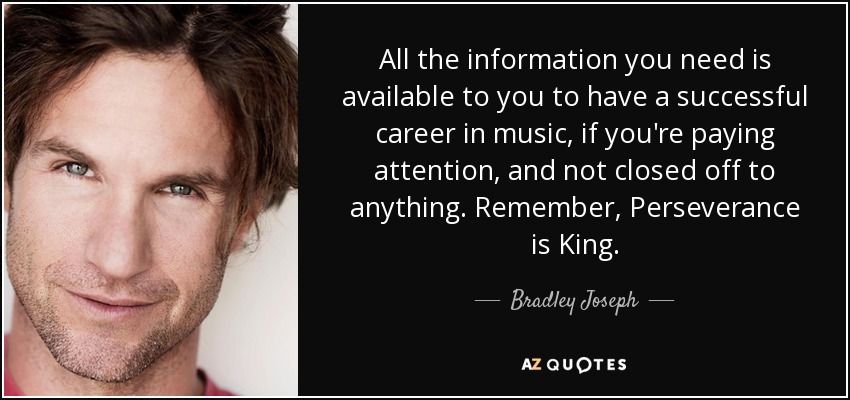 All the information you need is available to you to have a successful career in music, if you're paying attention, and not closed off to anything. Remember, Perseverance is King.