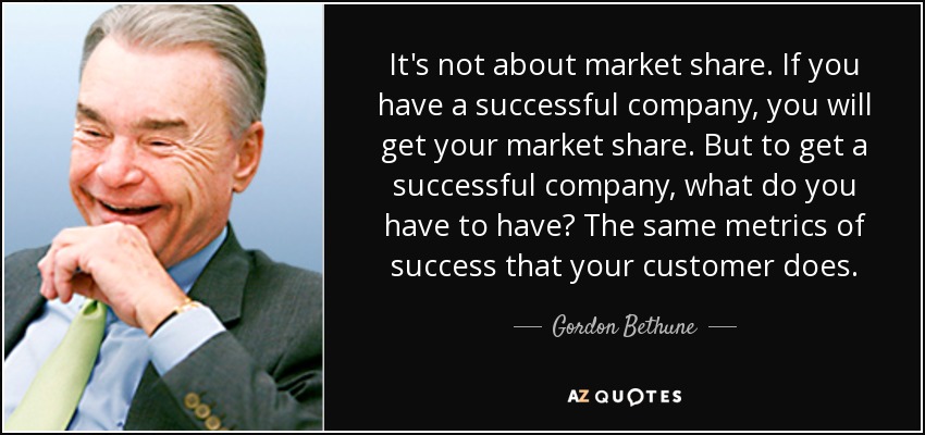 It's not about market share. If you have a successful company, you will get your market share. But to get a successful company, what do you have to have? The same metrics of success that your customer does.