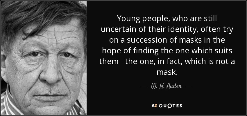 Young people, who are still uncertain of their identity, often try on a succession of masks in the hope of finding the one which suits them - the one, in fact, which is not a mask.