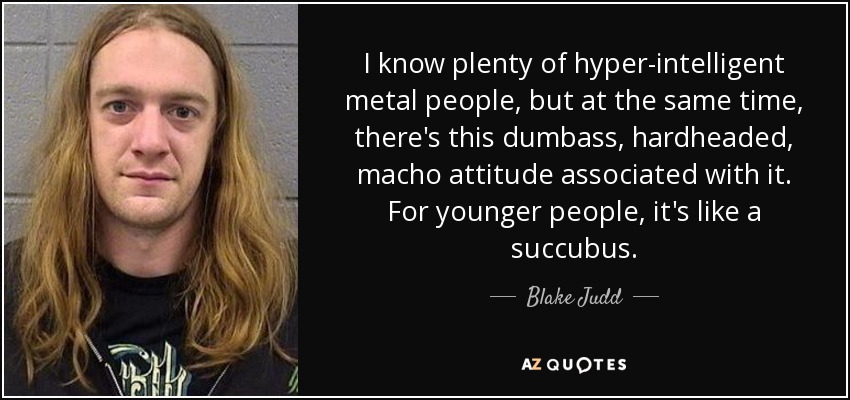 I know plenty of hyper-intelligent metal people, but at the same time, there's this dumbass, hardheaded, macho attitude associated with it. For younger people, it's like a succubus.