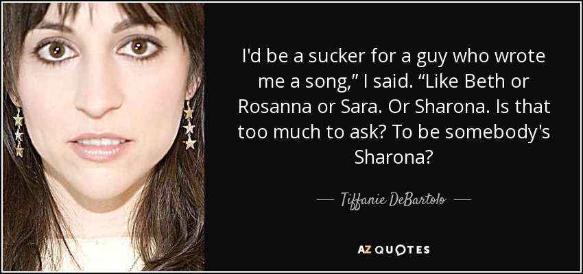 I'd be a sucker for a guy who wrote me a song,” I said. “Like Beth or Rosanna or Sara. Or Sharona. Is that too much to ask? To be somebody's Sharona?
