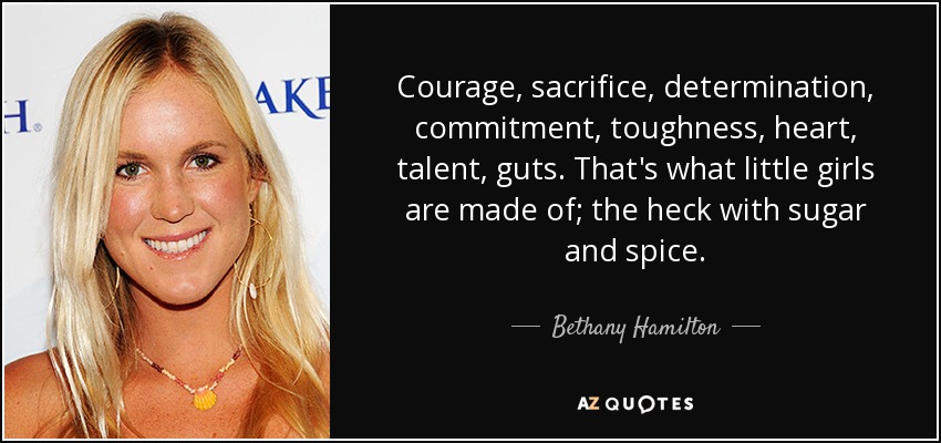 Courage, sacrifice, determination, commitment, toughness, heart, talent, guts. That's what little girls are made of; the heck with sugar and spice.
