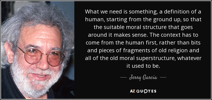 What we need is something, a definition of a human, starting from the ground up, so that the suitable moral structure that goes around it makes sense. The context has to come from the human first, rather than bits and pieces of fragments of old religion and all of the old moral superstructure, whatever it used to be.