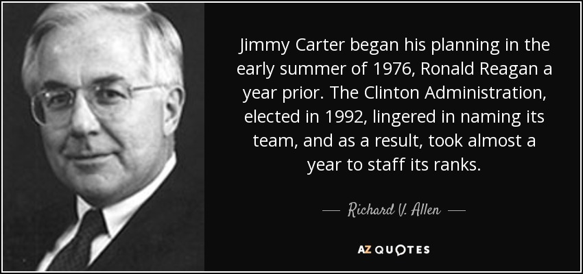 Jimmy Carter began his planning in the early summer of 1976, Ronald Reagan a year prior. The Clinton Administration, elected in 1992, lingered in naming its team, and as a result, took almost a year to staff its ranks.