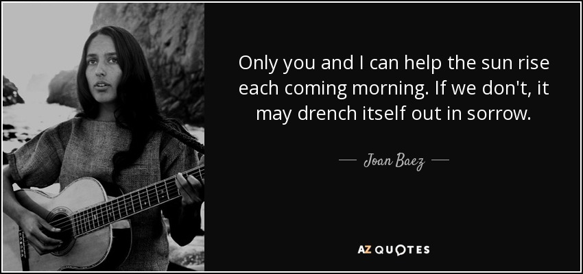 Only you and I can help the sun rise each coming morning. If we don't, it may drench itself out in sorrow.