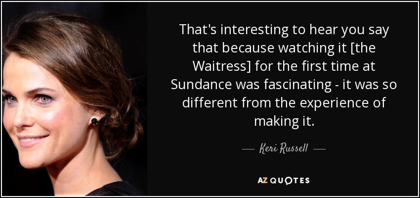 That's interesting to hear you say that because watching it [the Waitress] for the first time at Sundance was fascinating - it was so different from the experience of making it.