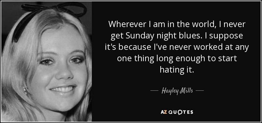 Wherever I am in the world, I never get Sunday night blues. I suppose it's because I've never worked at any one thing long enough to start hating it.