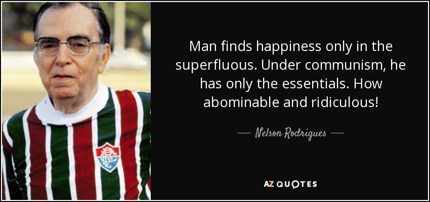 Man finds happiness only in the superfluous. Under communism, he has only the essentials. How abominable and ridiculous!