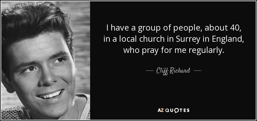 I have a group of people, about 40, in a local church in Surrey in England, who pray for me regularly.