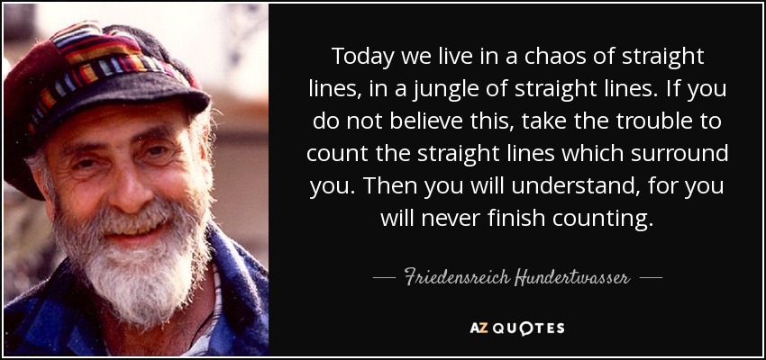Today we live in a chaos of straight lines, in a jungle of straight lines. If you do not believe this, take the trouble to count the straight lines which surround you. Then you will understand, for you will never finish counting.