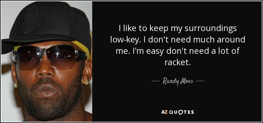 I like to keep my surroundings low-key. I don't need much around me. I'm easy don't need a lot of racket.