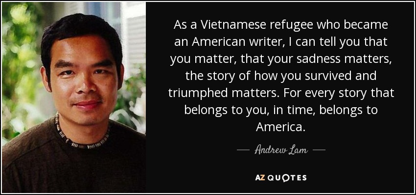 As a Vietnamese refugee who became an American writer, I can tell you that you matter, that your sadness matters, the story of how you survived and triumphed matters. For every story that belongs to you, in time, belongs to America.