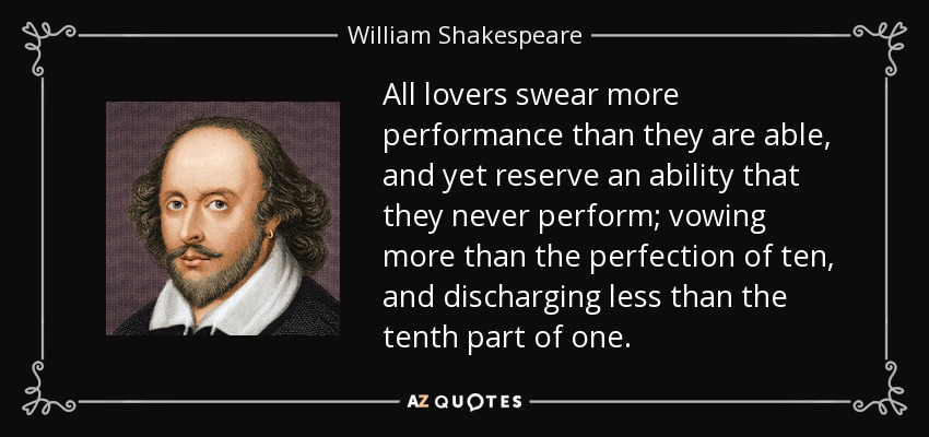 All lovers swear more performance than they are able, and yet reserve an ability that they never perform; vowing more than the perfection of ten, and discharging less than the tenth part of one.