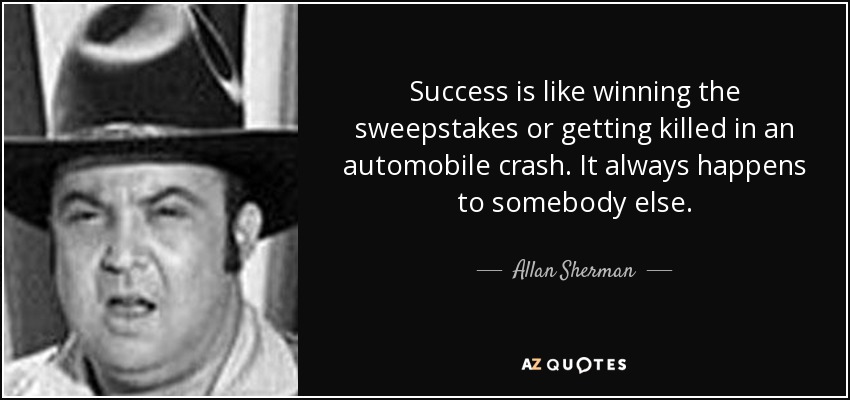 Success is like winning the sweepstakes or getting killed in an automobile crash. It always happens to somebody else.