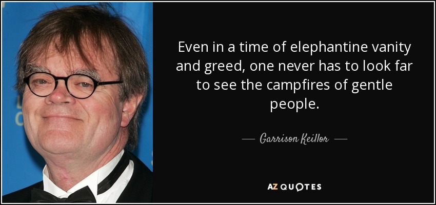 Even in a time of elephantine vanity and greed, one never has to look far to see the campfires of gentle people.
