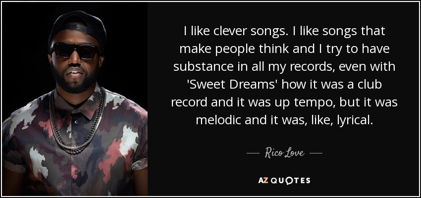 I like clever songs. I like songs that make people think and I try to have substance in all my records, even with 'Sweet Dreams' how it was a club record and it was up tempo, but it was melodic and it was, like, lyrical.