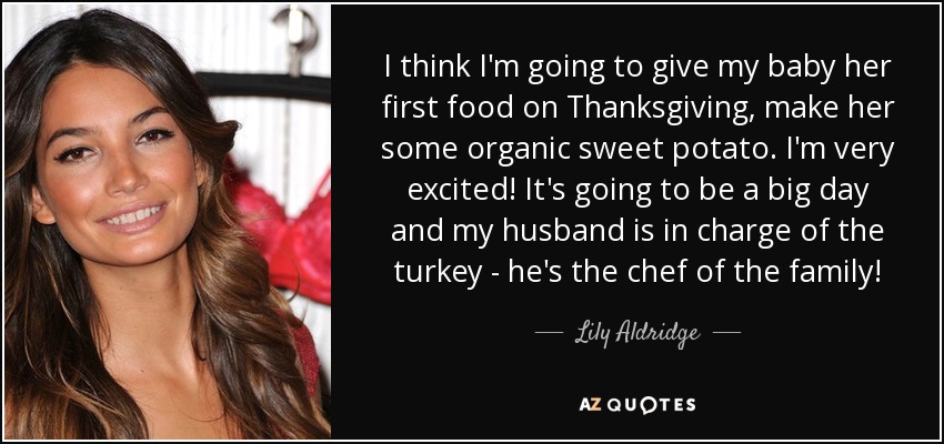 I think I'm going to give my baby her first food on Thanksgiving, make her some organic sweet potato. I'm very excited! It's going to be a big day and my husband is in charge of the turkey - he's the chef of the family!