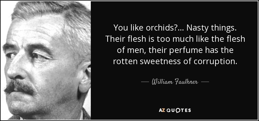 You like orchids?... Nasty things. Their flesh is too much like the flesh of men, their perfume has the rotten sweetness of corruption.