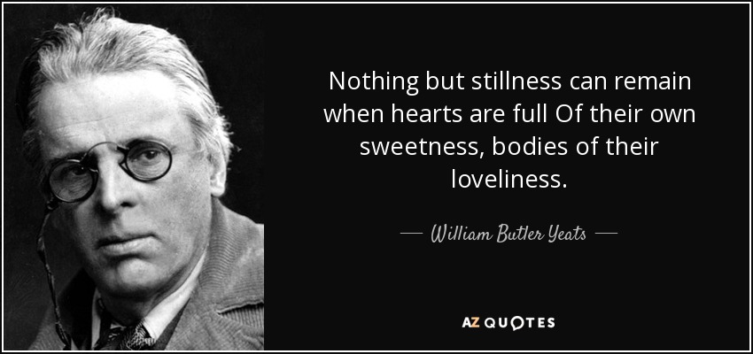 Nothing but stillness can remain when hearts are full Of their own sweetness, bodies of their loveliness.