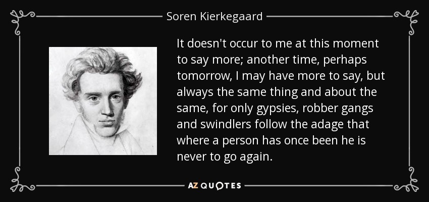 It doesn't occur to me at this moment to say more; another time, perhaps tomorrow, I may have more to say, but always the same thing and about the same, for only gypsies, robber gangs and swindlers follow the adage that where a person has once been he is never to go again.