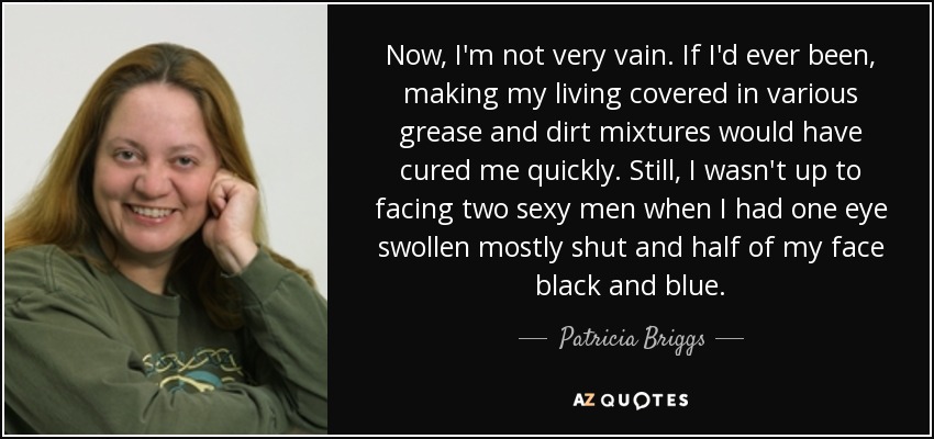 Now, I'm not very vain. If I'd ever been, making my living covered in various grease and dirt mixtures would have cured me quickly. Still, I wasn't up to facing two sexy men when I had one eye swollen mostly shut and half of my face black and blue.