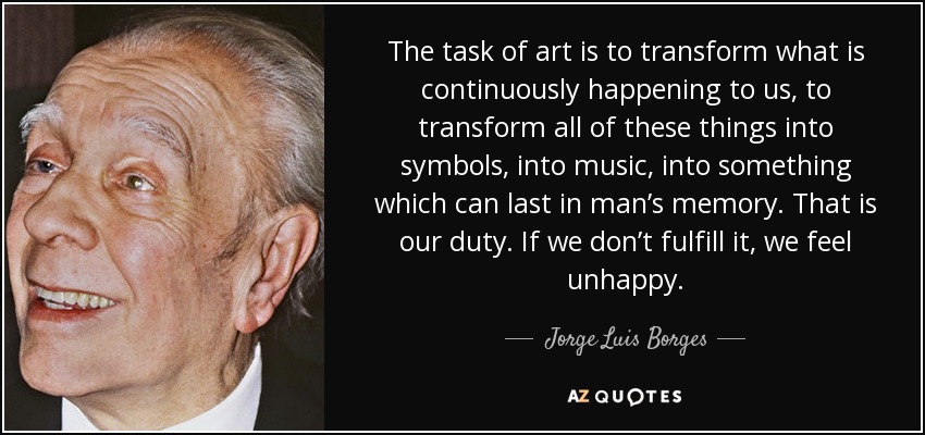 The task of art is to transform what is continuously happening to us, to transform all of these things into symbols, into music, into something which can last in man’s memory. That is our duty. If we don’t fulfill it, we feel unhappy.