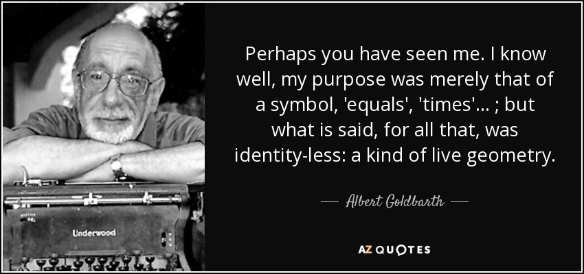 Perhaps you have seen me. I know well, my purpose was merely that of a symbol, 'equals', 'times'... ; but what is said, for all that, was identity-less: a kind of live geometry.