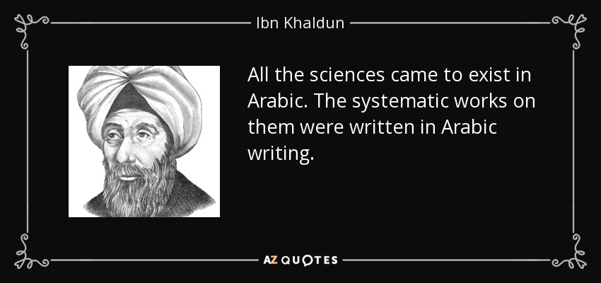 All the sciences came to exist in Arabic. The systematic works on them were written in Arabic writing.