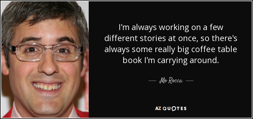 I'm always working on a few different stories at once, so there's always some really big coffee table book I'm carrying around.
