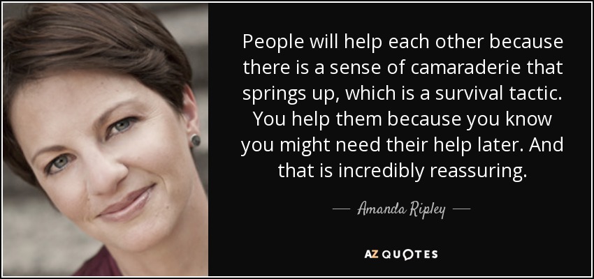 People will help each other because there is a sense of camaraderie that springs up, which is a survival tactic. You help them because you know you might need their help later. And that is incredibly reassuring.
