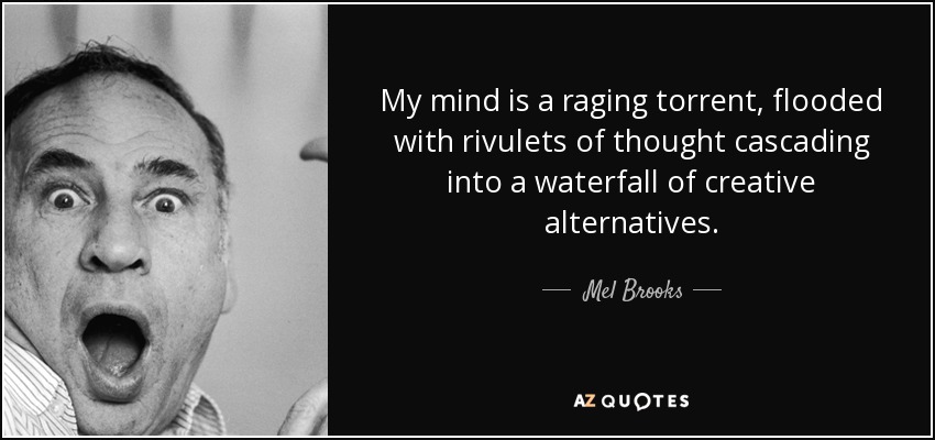 My mind is a raging torrent, flooded with rivulets of thought cascading into a waterfall of creative alternatives.