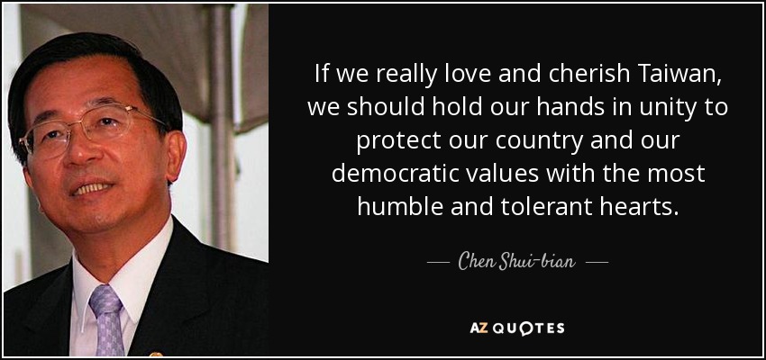 If we really love and cherish Taiwan, we should hold our hands in unity to protect our country and our democratic values with the most humble and tolerant hearts.