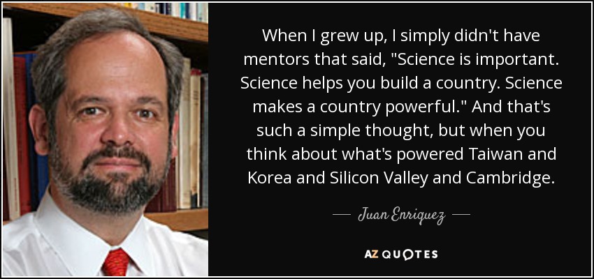 When I grew up, I simply didn't have mentors that said, "Science is important. Science helps you build a country. Science makes a country powerful." And that's such a simple thought, but when you think about what's powered Taiwan and Korea and Silicon Valley and Cambridge.