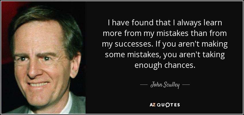 I have found that I always learn more from my mistakes than from my successes. If you aren't making some mistakes, you aren't taking enough chances.