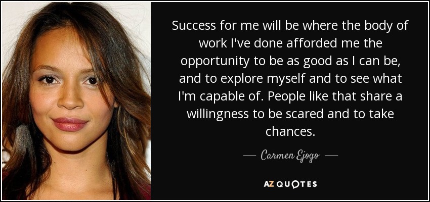 Success for me will be where the body of work I've done afforded me the opportunity to be as good as I can be, and to explore myself and to see what I'm capable of. People like that share a willingness to be scared and to take chances.