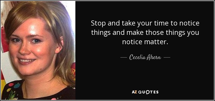 Stop and take your time to notice things and make those things you notice matter.