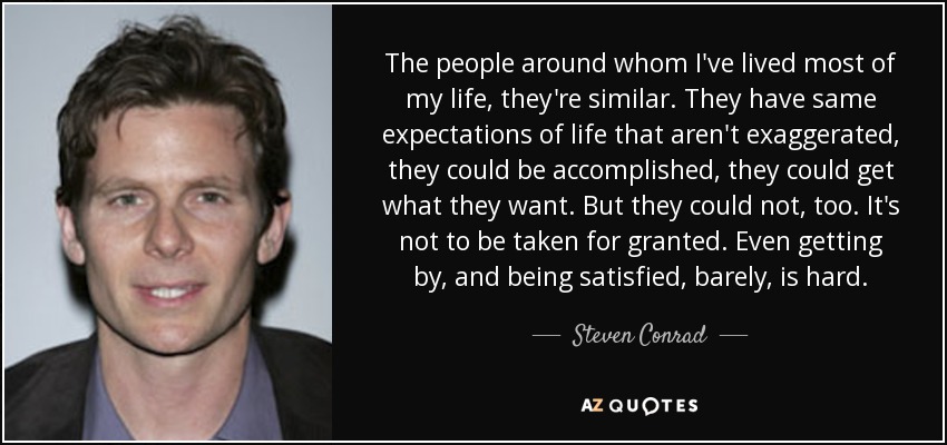 The people around whom I've lived most of my life, they're similar. They have same expectations of life that aren't exaggerated, they could be accomplished, they could get what they want. But they could not, too. It's not to be taken for granted. Even getting by, and being satisfied, barely, is hard.