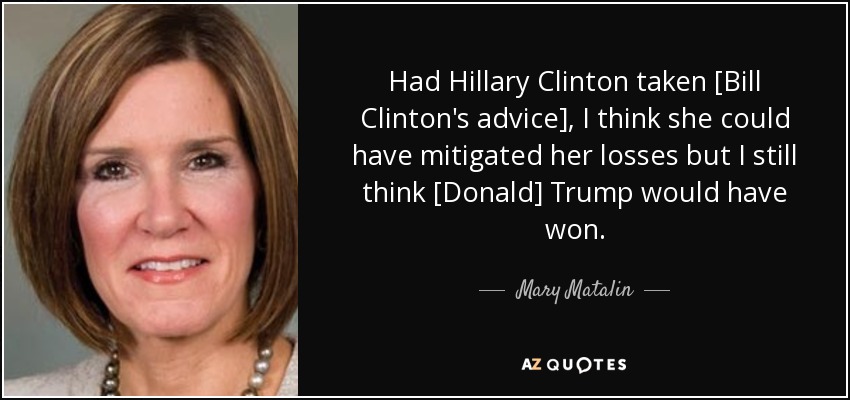 Had Hillary Clinton taken [Bill Clinton's advice], I think she could have mitigated her losses but I still think [Donald] Trump would have won.