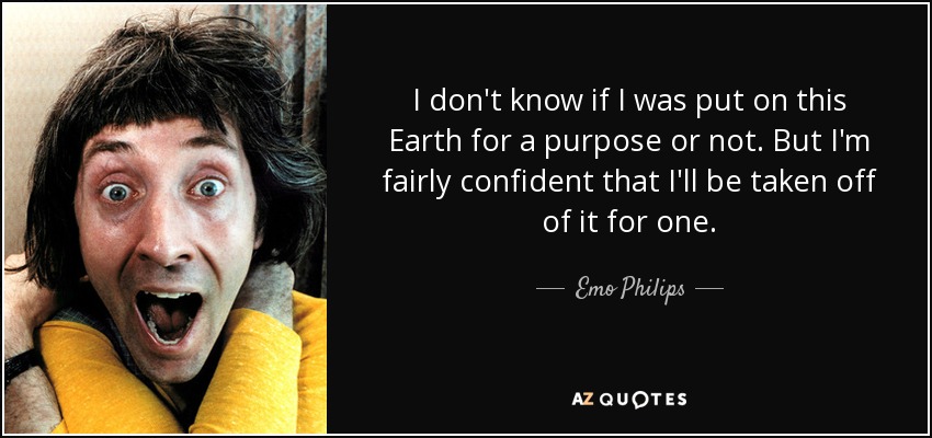 I don't know if I was put on this Earth for a purpose or not. But I'm fairly confident that I'll be taken off of it for one.