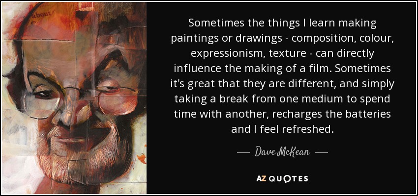 Sometimes the things I learn making paintings or drawings - composition, colour, expressionism, texture - can directly influence the making of a film. Sometimes it's great that they are different, and simply taking a break from one medium to spend time with another, recharges the batteries and I feel refreshed.